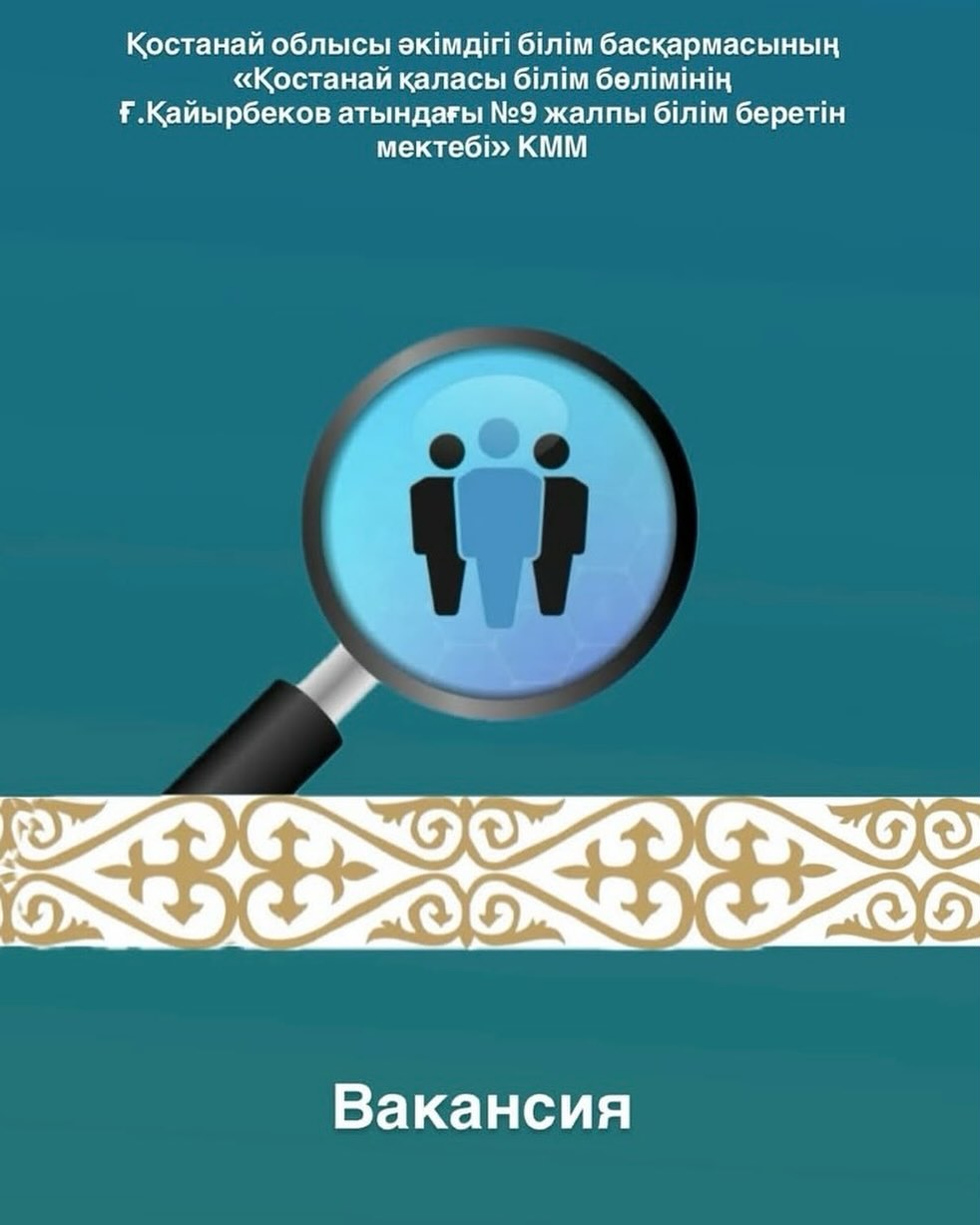 Қостанай қаласы білім бөлімінің Ғ. Қайырбеков атындағы № 9 жалпы білім беретін мектебі» КММ-не уақытша көркем еңбек пәні мұғалімі лауазымына конкурс жариялайды.