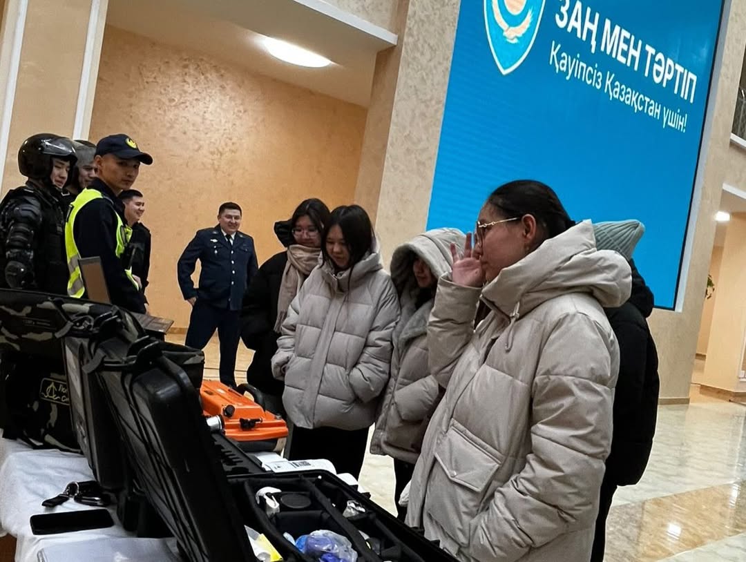 «Заң мен тәртіп» тақырыбындағы іс-шараға мектебіміздің 10-11 сынып оқушылары қатысып, полиция қызметкерлерінің атқаратын негізгі міндеттерімен, қоғамдық қауіпсіздік пен құқықтық тәртіпті қамтамасыз етудегі қызметімен танысты. Іс-шараның мақсаты - оқушылардың құқықтық сауаттылығын арттыру, заңға құрмет сезімін қалыптастыру және кәсіби бағдар беру бағытында нақты ақпарат ұсыну.